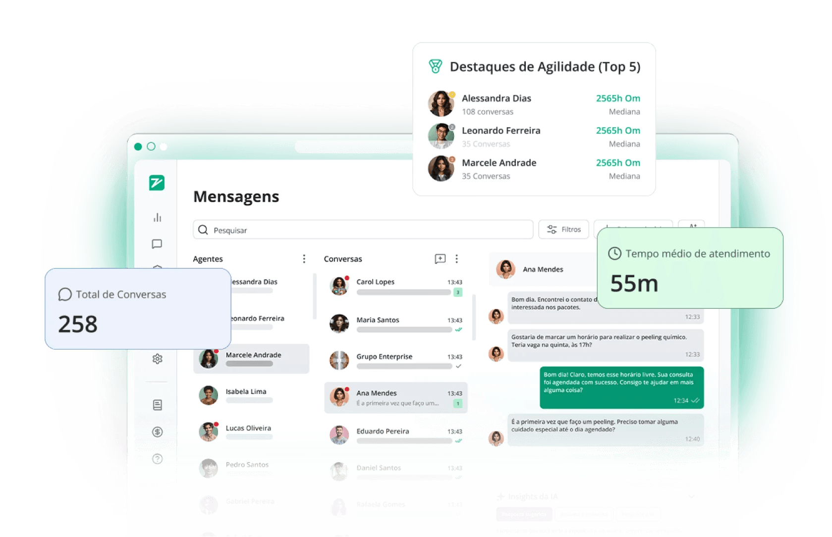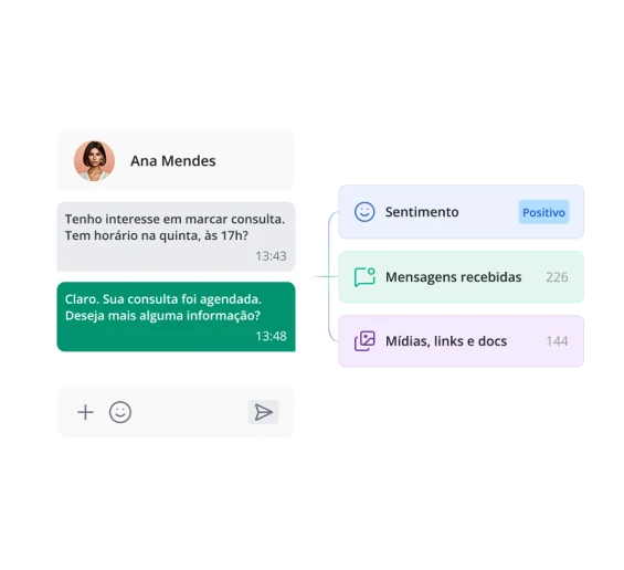 Uma plataforma que integra inteligência, automação e dados as contas de WhatsApp da sua empresa. Ganhe visibilidade sobre as conversas, aumente a produtividade do time e transforme interações em decisões mais estratégicas.
